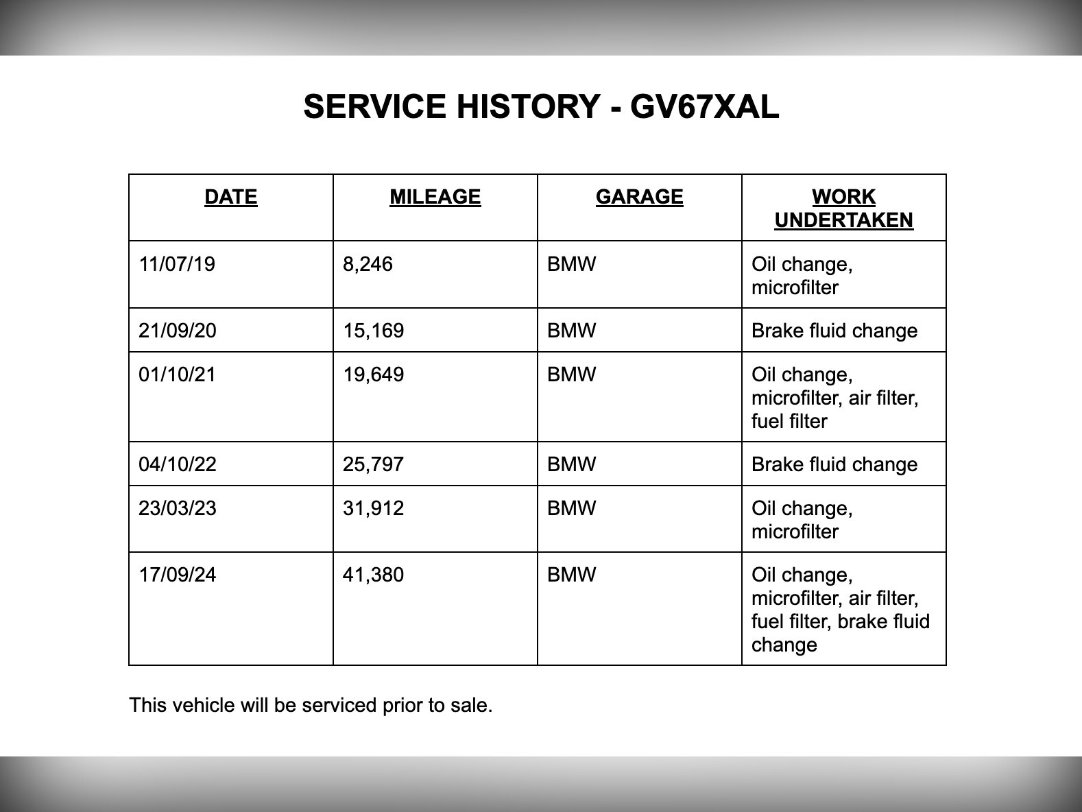 - Visible VIN